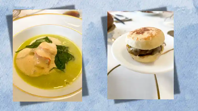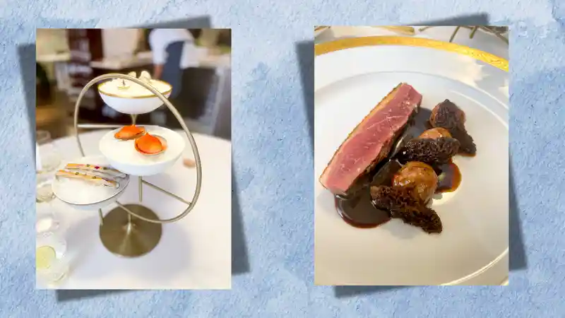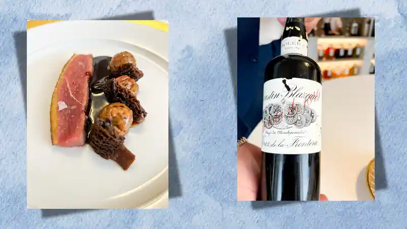 The bread and butter (brought from Normandy) take center stage, served with ritualistic precision and agility. The place is filled with colors and aromas with each new course. Lemons, orange blossom, fragrant aromas, floral notes, citrus fruits before the final dessert… The savory part ends with an exquisite duck from the Landes region, which confirms Juanlu’s love and skill with French cuisine, which he worked so hard on years ago and which he now masters so finely. A pleasure and a luxury.